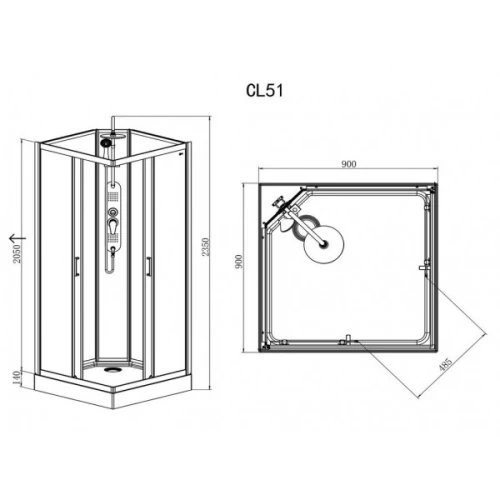 Хидромасажна квадратна душ кабина EPIC 2, без таван, в черно